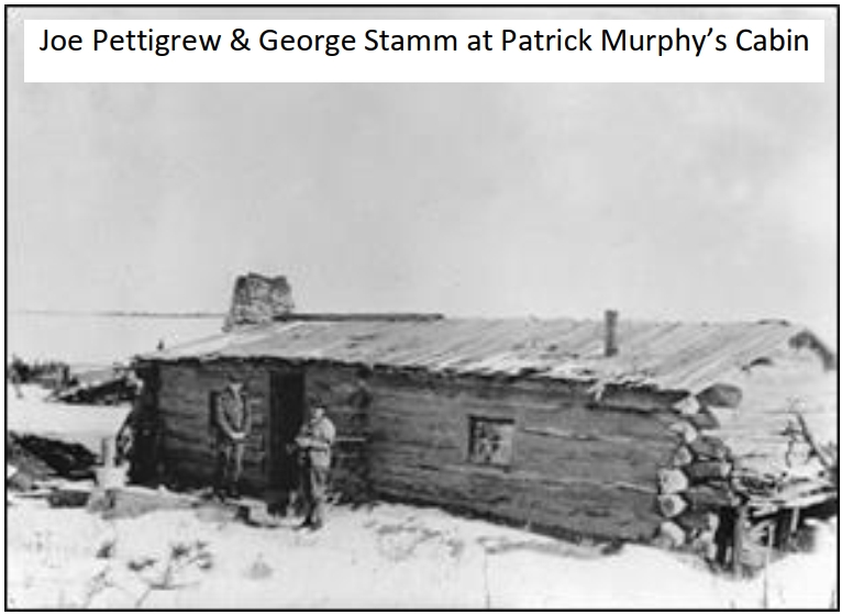 When he was 100 years old he rented his farmland to Tom Long. Two men with two, six-foot binders were cutting the grain on his place and Mr. Murphy was shocking it, keeping up with the binders. He loved children and to have company; he always kept candy to give to all the children. Monument planned a big celebration for Pat on his 100-year birthday, on St. Patrick’s Day, March 17, 1921. But Monument had one of the worst spring blizzards it ever experienced so the Joe Pettigrew & George Stamm at Patrick Murphy’s Cabin party was postponed. At 100 years of age he was very sharp and alert, quick, and lively, walked as straight as any young man; all who knew him dearly loved him. When he was 100 years of age he was standing on the steps of the Higby Mercantile looking towards Pike’s Peak and two young men were watching him, thought they would be smart and said to him, “Old man, do you see that Jack rabbit on the top of the Peak?” Mr. Murphy with his Irish wit replied “No, by Gawd, I don’t see him but I can sure hear him thumping his hind legs.”