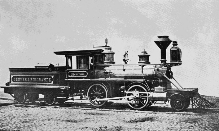 Montezuma, the first Locomotive of the new “Baby Railroad,” ca 1871